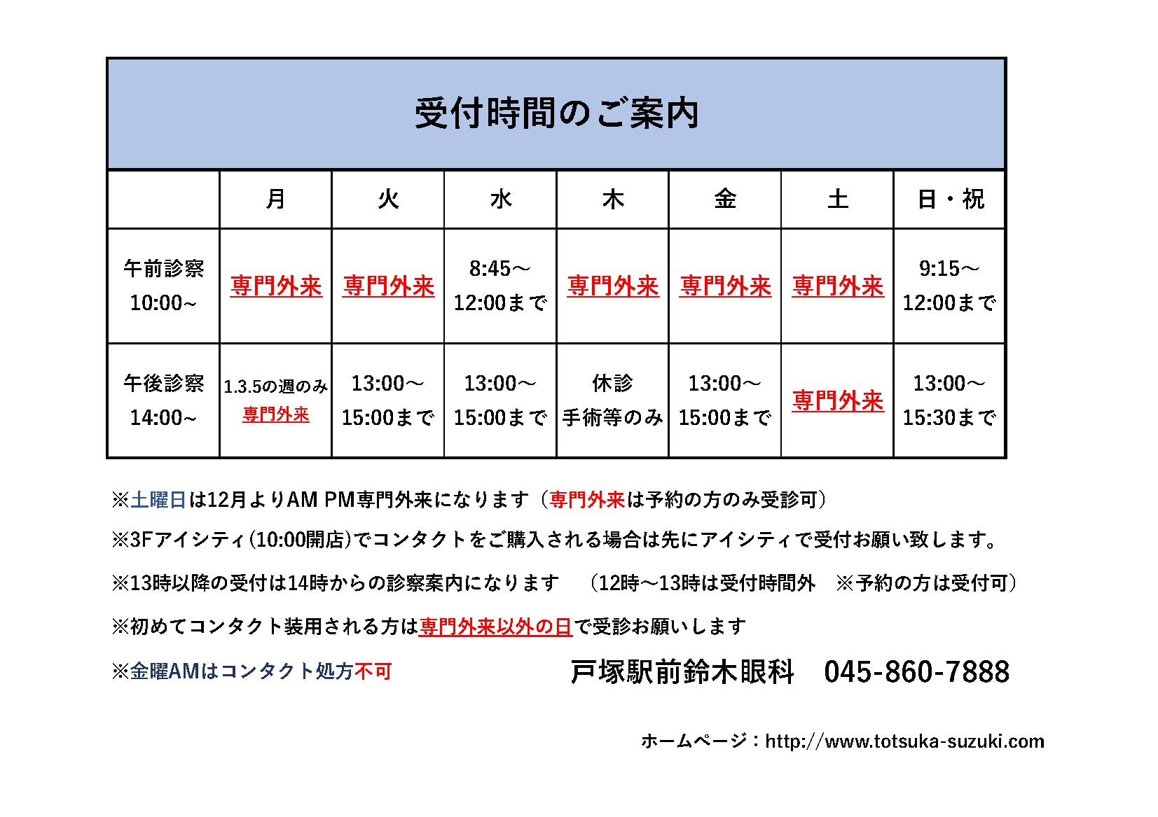 眼鏡処方やコンタクトレンズ処方を含め、検査が必要なご受診に関して前日までの予約制とさせていただくことになりました。