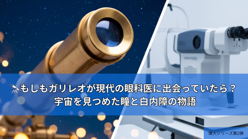 🔭もしもガリレオが現代の眼科医に出会っていたら? 宇宙を見つめた瞳と白内障の物語白内障多焦点眼内レンズQOL向上ハローグレア眼科ブログ現代医療偉人の目の悩みガリレオ天文学2025-09-30 11:00戸塚駅前鈴木眼科