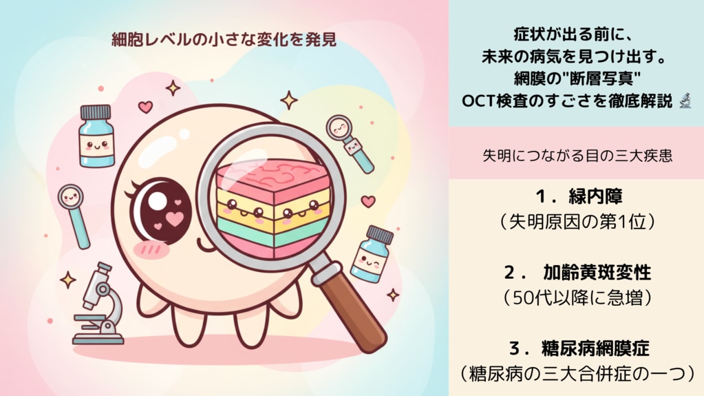 症状が出る前に、未来の病気を見つけ出す。網膜の"断層写真"OCT検査のすごさを徹底解説 🔬緑内障多焦点眼内レンズ糖尿病網膜症加齢黄斑変性精密検査OCT検査網膜断層早期発見視力予防2025-10-10 11:00戸塚駅前鈴木眼科